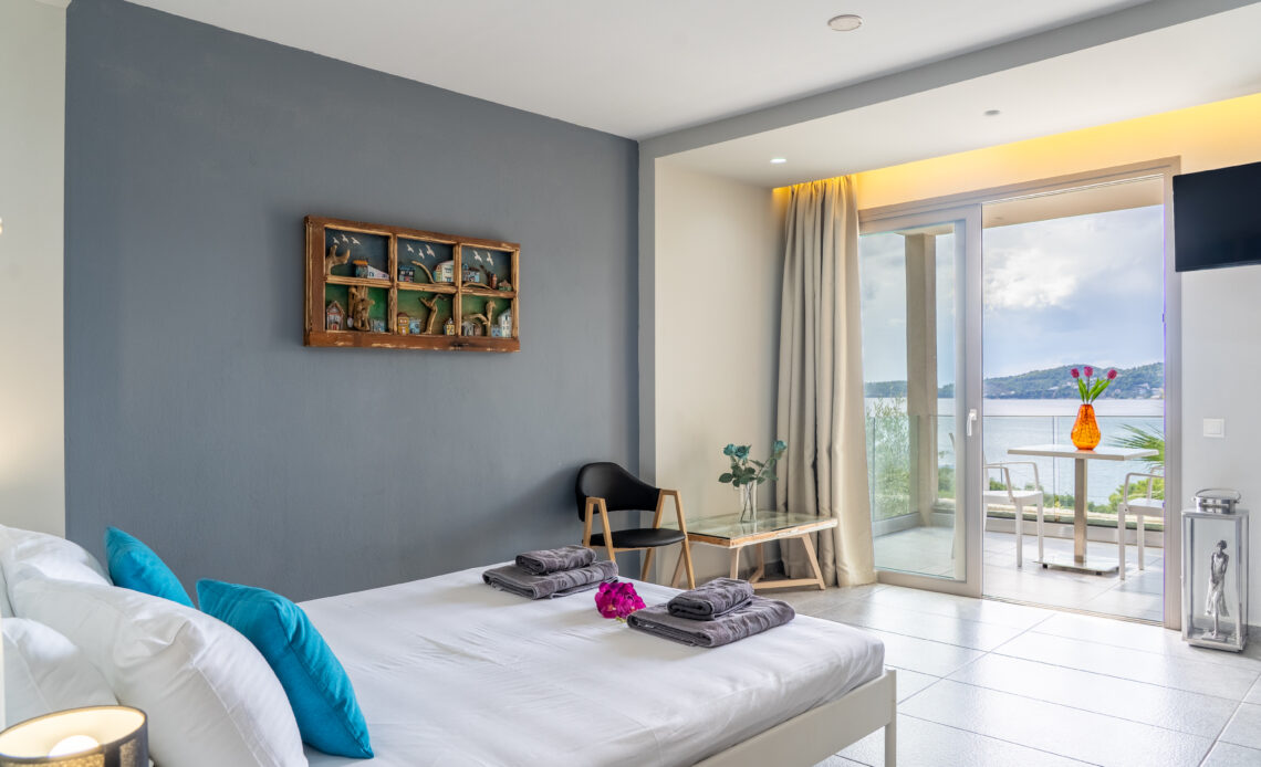 A big room of 25 m², suitable for 2 adults. The room has a fully equipped balcony which offers magnificent view to the sea and to the town of Skiathos.
